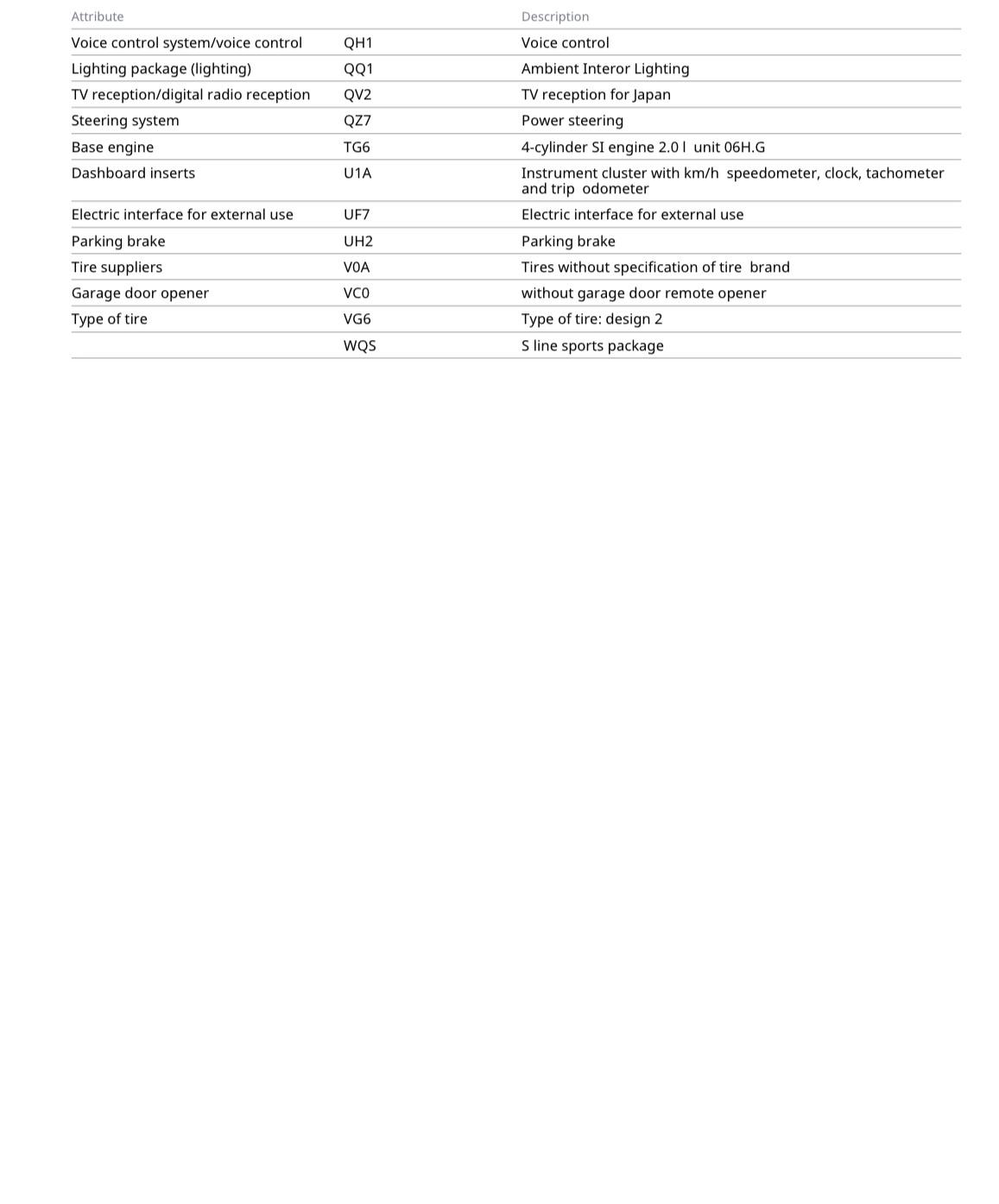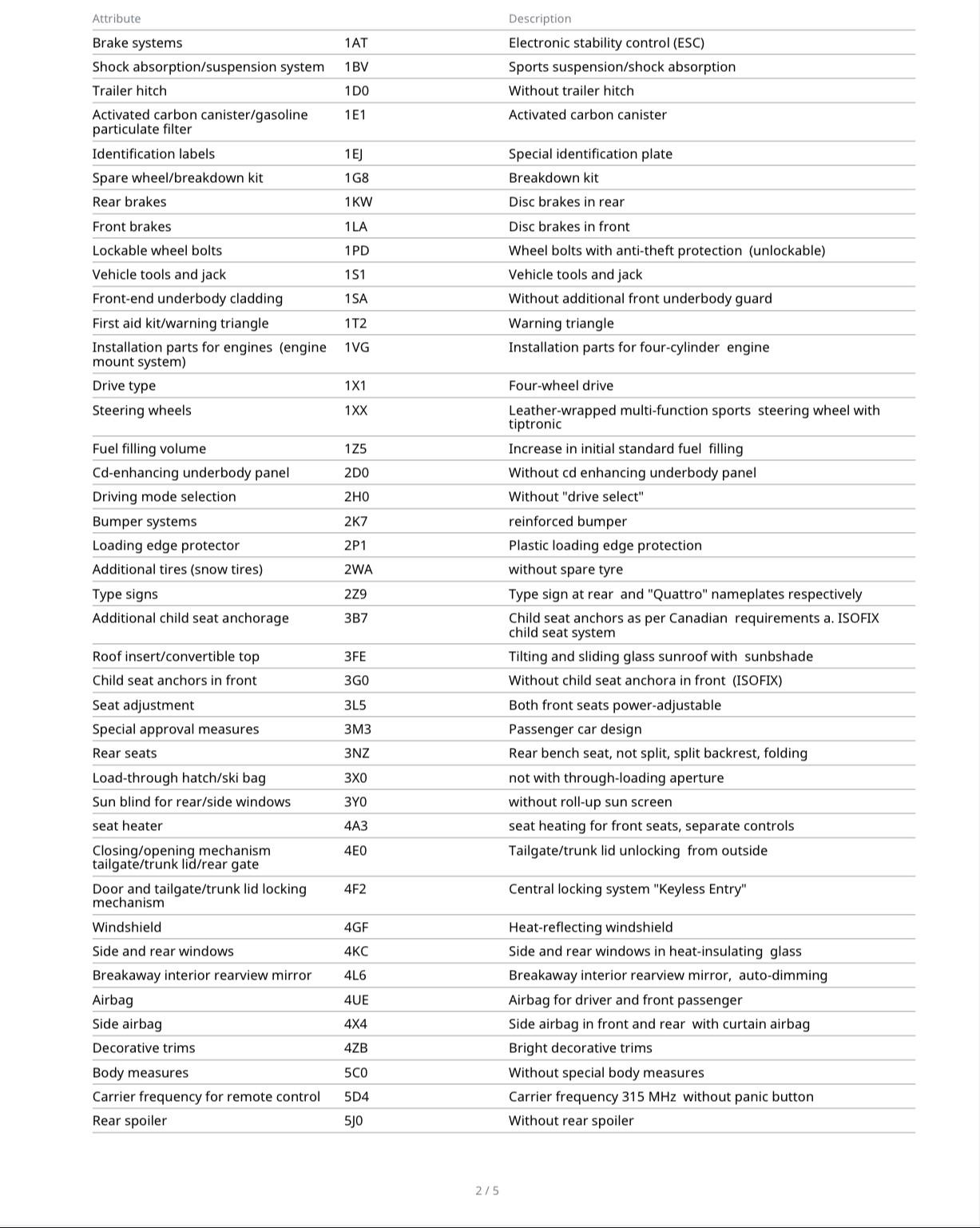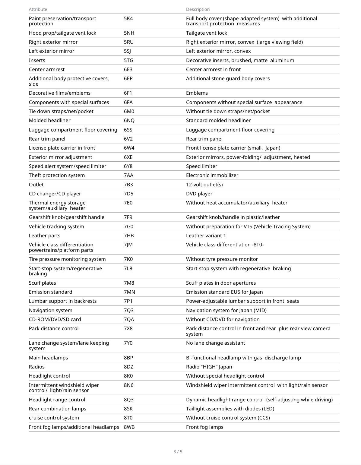 Grouped feature categories for a quick overview of what this vehicle offers.