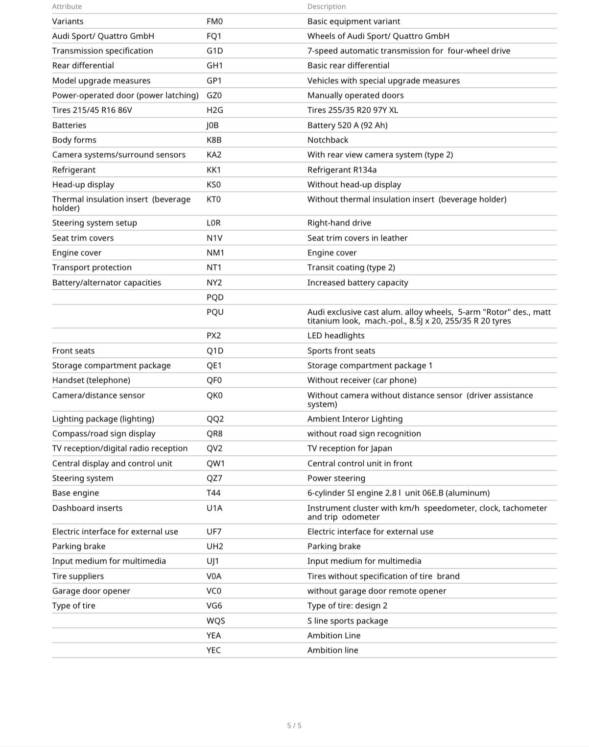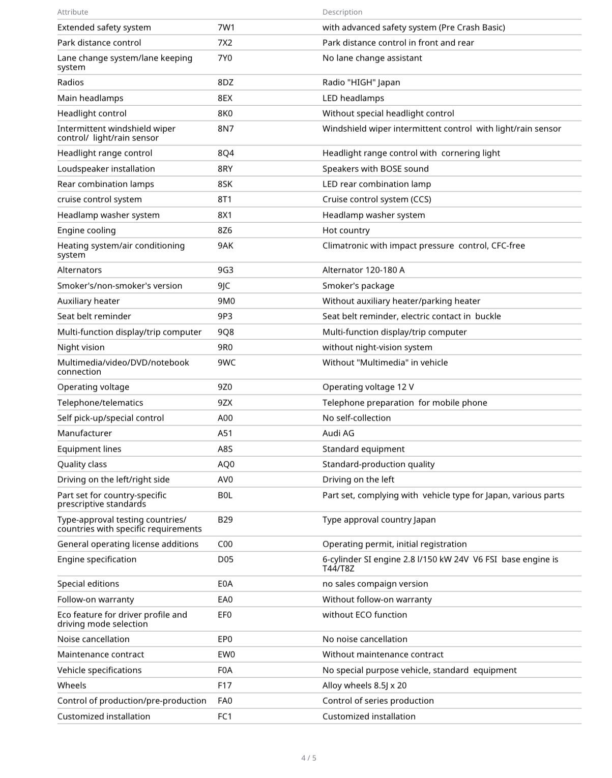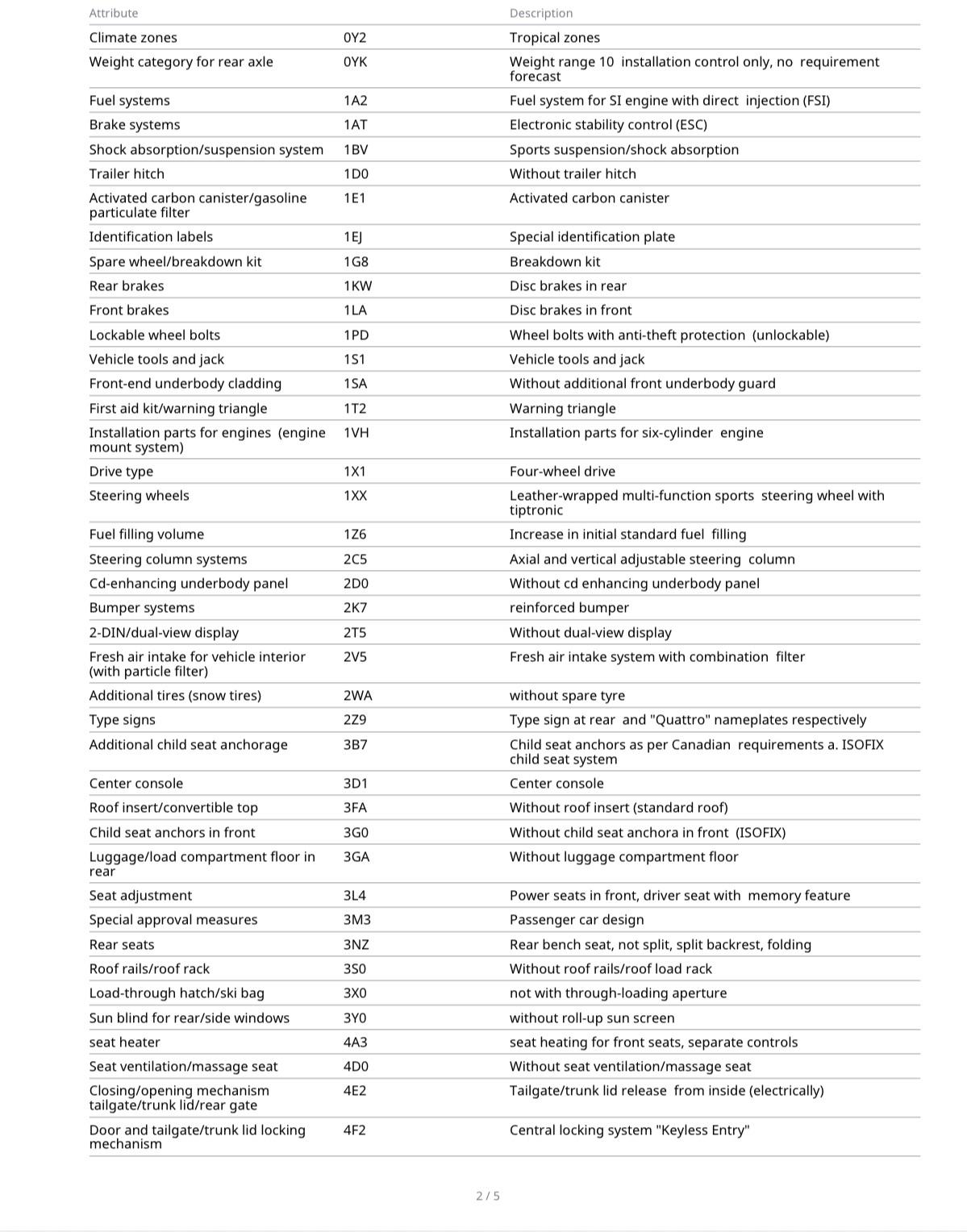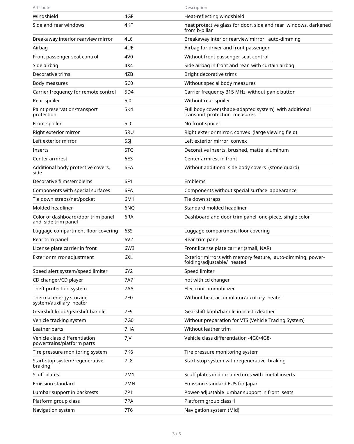 Grouped feature categories for a quick overview of what this vehicle offers.